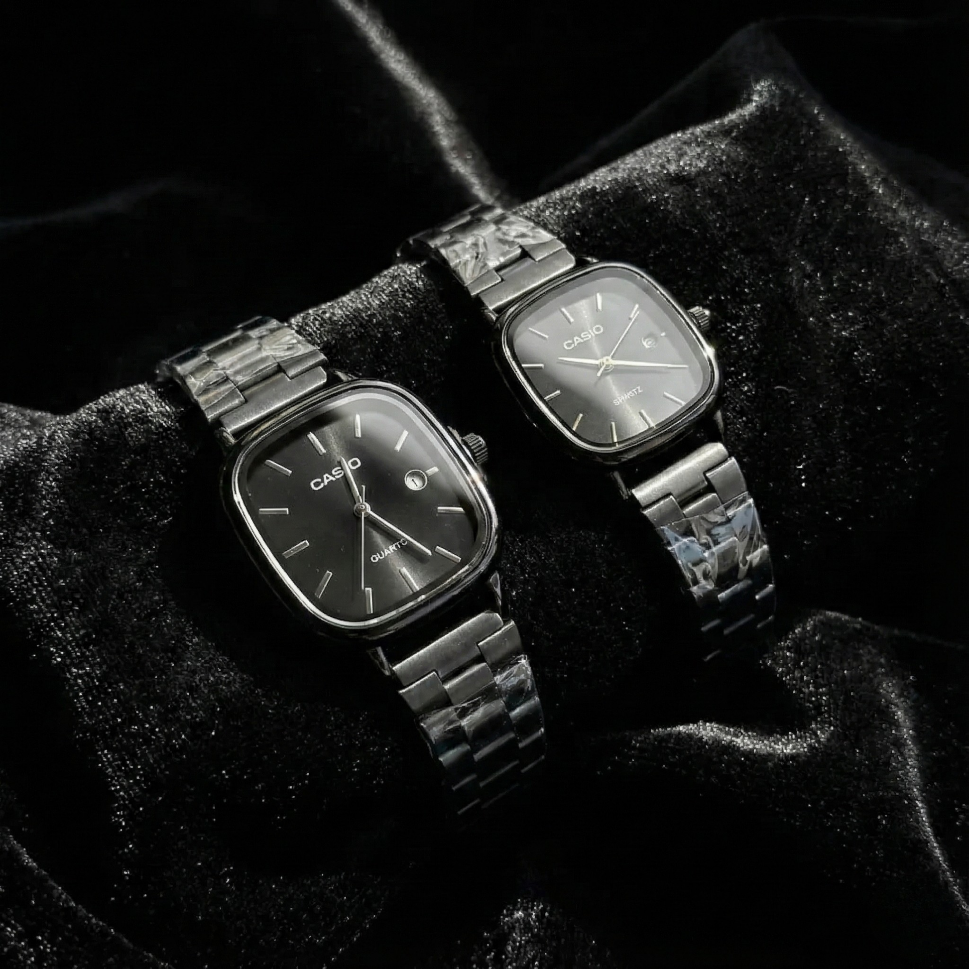 Casio Black Vintage Watch Couple Set Pine Green Dial