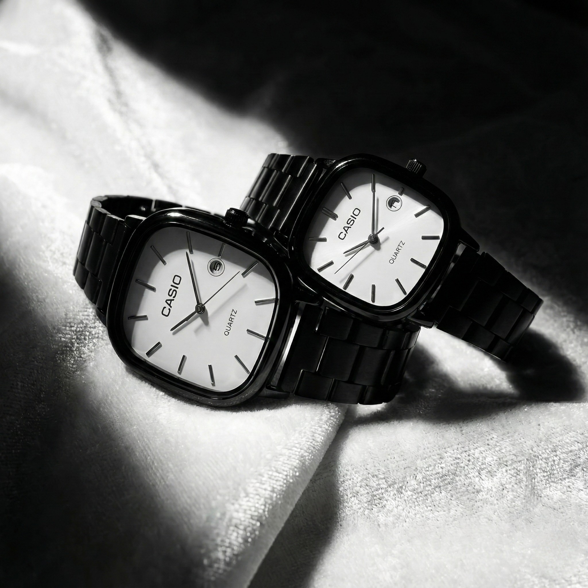 Casio Gray Vintage Watch Couple Set Cherry Red Dial