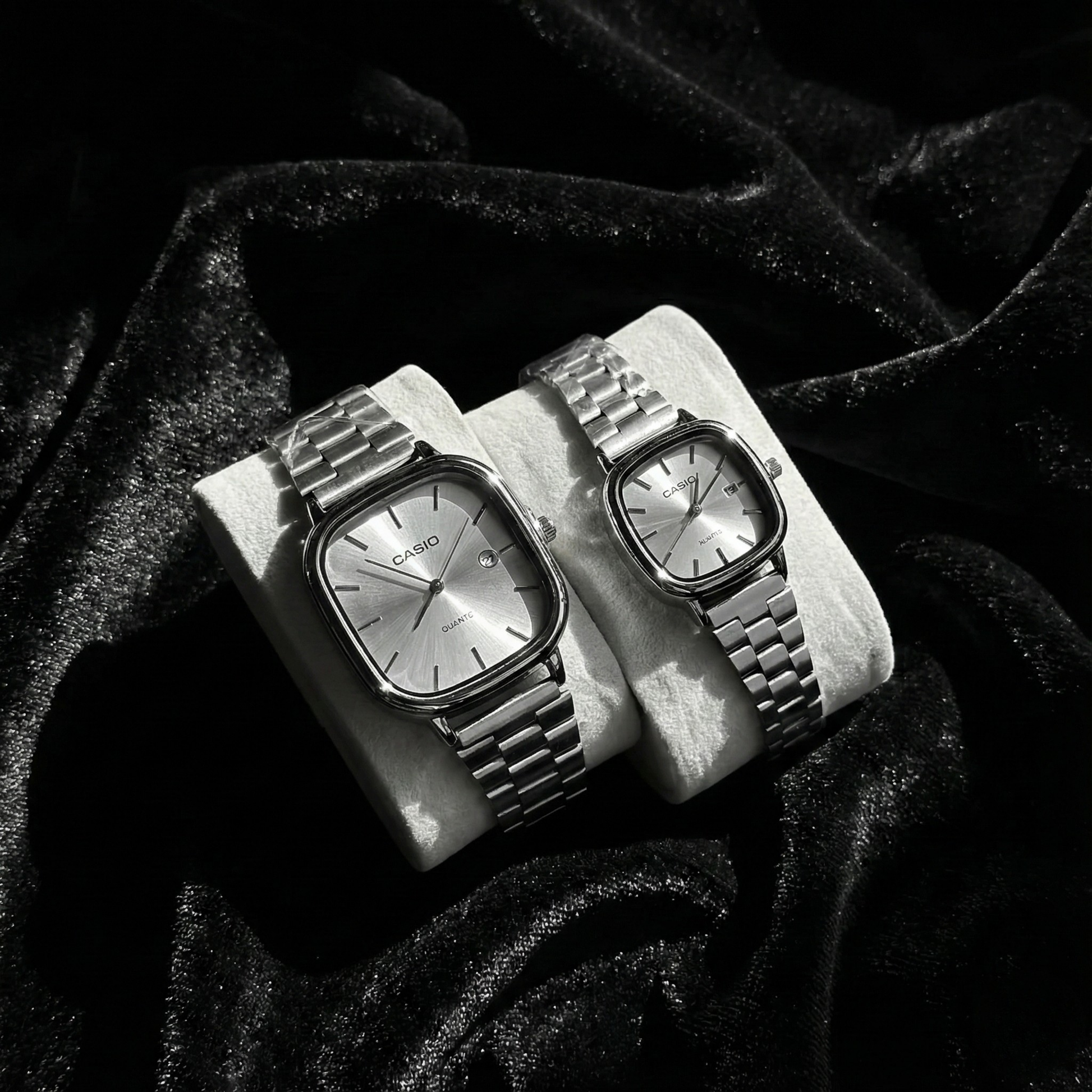 Casio Gray Vintage Watch Couple Set Midnight Black Dial